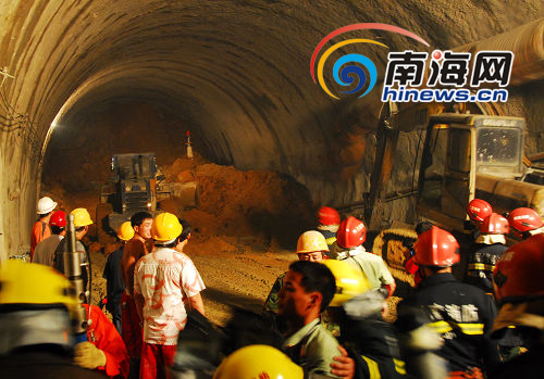 在施救現(xiàn)場(chǎng),三亞市長(zhǎng)市長(zhǎng)助理、公安局局長(zhǎng)王少山接受南海網(wǎng)記者采訪時(shí)說,由于塌方面在離隧道口400米的隧道深處,塌方處工作面狹窄,只能容下一臺(tái)挖掘機(jī),邊挖掘還繼續(xù)有土塌現(xiàn)象發(fā)生,影響到救援的速度,現(xiàn)已約運(yùn)出了3000余立方沙土。據(jù)現(xiàn)場(chǎng)消防官兵及其他施救人員反映,現(xiàn)已經(jīng)能隱隱約約聽被困人員發(fā)出來的求救聲音。