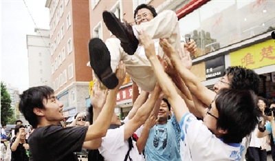 高考最后一門英語(yǔ)結(jié)束了,對(duì)緊繃的高三學(xué)生來(lái)說(shuō),這是一個(gè)歡樂(lè)的時(shí)刻,輕松的時(shí)刻。周南中學(xué)十幾名高三學(xué)生,剛走出長(zhǎng)沙一中考點(diǎn),便將班主任吳老師舉起拋向了空中。