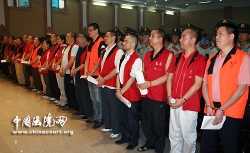 早晨8點(diǎn)左右,唐亞南等23名原審被告人由警車押送到庭,八點(diǎn)半左右,開始開庭審理。審判長宣布開庭后,唐亞南等23名原審被告人被帶入庭審現(xiàn)場(chǎng),站到法庭的被告席上。法官當(dāng)庭宣讀了一審判決書,一審判決以集資詐騙罪判處原審被告人唐亞南死刑,剝奪政治權(quán)利終身,并處沒收個(gè)人全部財(cái)產(chǎn);以集資詐騙罪判處原審被告人丁魁元死刑,緩期二年執(zhí)行,剝奪政治權(quán)利終身,并處沒收個(gè)人全部財(cái)產(chǎn);以集資詐騙罪判處原審被告人李全才、鄧書杰、彭標(biāo)、李凱無期徒刑,剝奪政治權(quán)利終身,并處沒收個(gè)人全部財(cái)產(chǎn)。其他15名原審被告人分別以隱瞞犯罪所得罪、非法吸收公眾存款罪、集資詐騙罪被判處三年至十五年不等的有期徒刑;另兩名原審被告人被判非法吸收公眾存款罪,因情節(jié)輕微,免予刑事處罰。一審宣判后,唐亞南等19名原審被告人提出上訴。