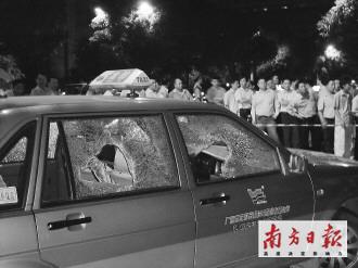 昨日凌晨2時40分許,在天河體育中心東門口,被打的哥李師傅臉上的幾處血痕在夜色中清晰可見。在其身后,其駕駛的綠色的士四個車窗全被砸出大洞。的士車后,是一輛熄火的寶馬730i轎車,遠(yuǎn)處還有一輛黑色別克轎車。兩車均為粵A牌照。