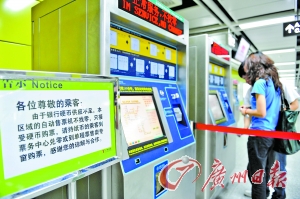 昨日上午9時(shí)20分,記者剛進(jìn)地鐵三號(hào)線廈滘站就聽到了廣播,“由于地鐵站硬幣不足,請(qǐng)乘客自備硬幣購票!庇浾呖吹,雖然這時(shí)候已經(jīng)不是上班的高峰期,但很多乘客因?yàn)闆]有帶足一元的硬幣,在售票機(jī)上買不了票,只好在人工售票窗口前排隊(duì)購票,記者看到,這時(shí)候窗口前排隊(duì)的市民有10多人,手上拿的都是10元、20元的票子,售票人員一直忙個(gè)不停。