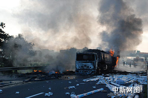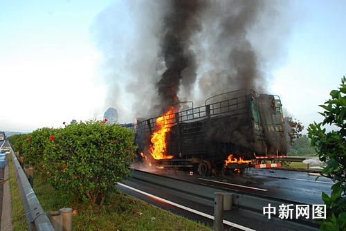 據(jù)江門(mén)市交警部門(mén)稱,27月8日05時(shí)20分,一皖籍大型貨車運(yùn)載PVC管沿開(kāi)陽(yáng)高速公路往陽(yáng)江方向行駛,行至開(kāi)陽(yáng)高速公路恩平市大槐路段時(shí),與前方運(yùn)載甲醇的一粵籍的重型半掛牽引車發(fā)生碰撞,碰撞后,兩車迅速著火燃燒,皖籍大型貨車車上三人當(dāng)場(chǎng)死亡。