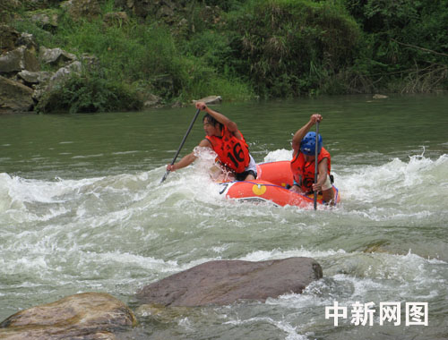 中新網(wǎng)成都7月11日電(張琳琳)7月11日,2009中國·都江堰(虹口)國際漂流節(jié)在都江堰市虹口景區(qū)拉開序幕。漂流節(jié)的的重頭戲是“自然水域漂流大賽”,來自美國、英國、澳大利亞、捷克、荷蘭的5支外國隊伍及遼寧、貴州、北京等7個省市的11支隊伍,總計45名運動員參加了比賽。比賽的項目為雙人橡皮艇長距離漂流,最終來自英國、捷克的代表隊分別獲得冠軍、季軍,中國貴州的2名業(yè)余選手獲得亞軍。