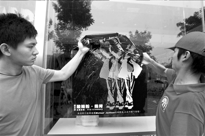 昨天中午,10余名邁克爾·杰克遜的歌迷聚集在望京利澤中一路1號的一家酸辣粉餐廳門前,要求店方撕掉店外印有杰克遜人像的消費券宣傳頁,禁止售賣此類消費券。最終店主撕下宣傳頁,并答應不再使用此類消費券后,歌迷才離開。