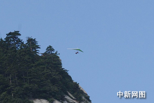 中新網(wǎng)陜西華山7月18日電(記者 冽瑋 )7月18日上午,號稱“中國第一飛人”、年已66歲的衣瑞龍駕駛無動力三角翼滑翔機成功飛越了西岳華山。他是目前中國用三角翼飛翔的第一人,是至今國內(nèi)飛過高山最多的探險家,也是他第五次飛越這座被譽為“天下奇險第一山”。
