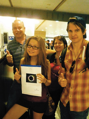 加拿大籍旅客羅伯特帶領(lǐng)全家六口來(lái)中國(guó)觀看日全食奇景。他在辦好入境手續(xù)后告訴邊檢民警:他和4個(gè)孩子都是天文愛(ài)好者,去年9月就定好了酒店,這次專程帶放假的孩子來(lái)觀看“日全食”。