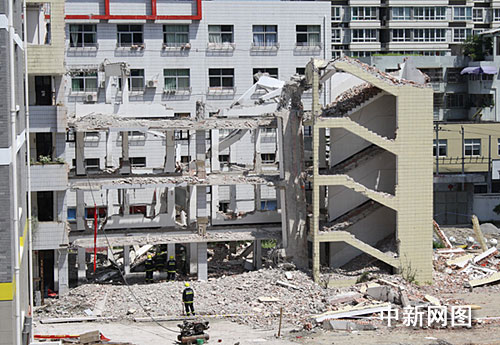 中新網(wǎng)溫州7月20日(記者李飛云 江耘)昨天上午8點(diǎn)32分,浙江平陽縣昆陽鎮(zhèn)第一小學(xué)內(nèi)拆遷舊的大樓導(dǎo)致部分房屋坍塌,造成在樓內(nèi)作業(yè)的6名施工人員一死五傷。