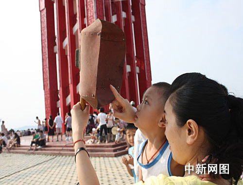 從21晚10時開始,陸續(xù)有民眾登上當(dāng)?shù)刂包c鳳凰山,等候日全食。22日7時許,記者在鳳凰山上山沿途看見數(shù)以萬計的民眾扶老攜幼,手持X光片、電焊防護(hù)鏡、黑色玻璃片、水盆等觀看工具,在鳳凰山上尋找最佳觀看位置。