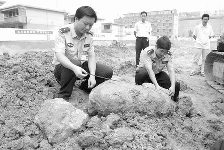 大河報(bào) 記者杜文育通訊員陶華鳴文圖訊“好家伙,是一枚大炸彈!”7月25日,在許昌市南關(guān)大街南段一工地上,一輛挖掘機(jī)正在進(jìn)行挖掘地基作業(yè),隨著一聲金屬與金屬撞擊的聲響,一枚沒有引爆的大炸彈赫然出現(xiàn)在眼前,人們急忙報(bào)警。