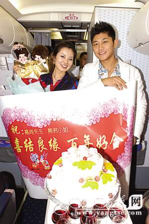7月25日下午4:00,東航江蘇公司南京—北京的MU2831航班上演繹了一場(chǎng)長(zhǎng)達(dá)15分鐘的空中求婚儀式。英俊帥氣的北京小伙子高尚先生和年輕貌美的南京姑娘熊君小姐無(wú)疑成了當(dāng)日航班上最幸福的人。