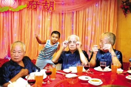 酒過三巡,80高齡的三位壽星興致依舊很高。孝順的兒孫問起老人,還有何生日愿望?三老不約而同地講到,希望家庭成員都能身體健康、相處融洽。老二胡柏成感概地說:“再艱難的日子我們都挺了過來,如今太平盛世,生活是愈來愈富裕了。但真情的溫馨,親情的可貴是再多金錢也無法換取的!”