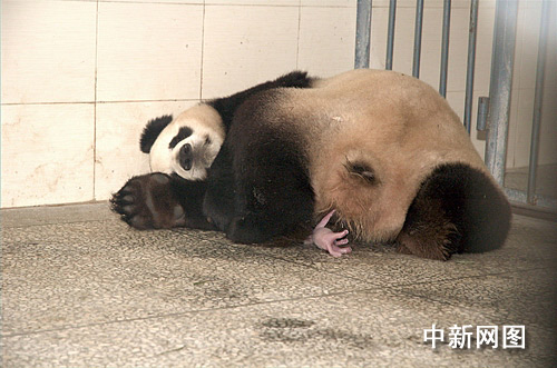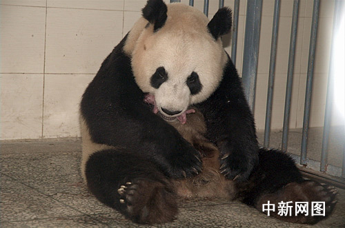 7日晨6點(diǎn)46分,“甜甜”開(kāi)始出現(xiàn)產(chǎn)前征兆,8點(diǎn)13分破羊水,在經(jīng)過(guò)3個(gè)多小時(shí)的努力后生下一對(duì)健康的雙胞胎。初次當(dāng)媽媽的“甜甜”努力嘗試將寶寶叼在懷里,但小仔亂動(dòng)亂叫,很快又滑落到了地上,經(jīng)過(guò)多次努力,小仔終于在媽媽?xiě)牙锇察o下來(lái),“甜甜”用舌頭輕舔著寶寶的身體,儼然是位稱(chēng)職的母親。產(chǎn)下第二仔以后,工作人員隨即將第一仔取出送往育嬰室進(jìn)行人工育幼,經(jīng)初步檢查,該寶寶是雄性,體重146.2克,各項(xiàng)身體指標(biāo)正常。