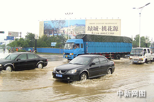 中新網杭州8月10日電(記者 龔讀法 見習記者 王磊 實習生 馬杰)8月9日,受第八號臺風“莫拉克”影響,杭州降水量劇增,杭州不少道路遭雨水淹沒。8月10日,“莫拉克”對杭州的影響開始減弱,杭州道路積水有所緩和,而之前積水最嚴重的天目山路永和路口足膝的積水,也開始下降,各部門正積極排澇工作中。
