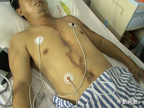 經(jīng)轉(zhuǎn)院治療后,黃世波病情趨于穩(wěn)定。主治醫(yī)生李挺介紹說,病人目前病情穩(wěn)定,雙肺呼吸不對(duì)稱疑出現(xiàn)肺爆裂,所以說話吃力,還需觀察心功能是否損傷。