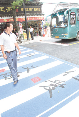 一些市民也認為,“文化斑馬線”上的書法和印章完全是多余的,“新型斑馬線太花哨,要是司機只顧低頭看字,出了事故,誰來承擔責任?”他們認為,畢竟斑馬線首先要承載的是安全,而非文化,在斑馬線兩旁或者路牌上體現(xiàn)書法作品和文化內(nèi)涵也許更好。(本報記者 蔣德)