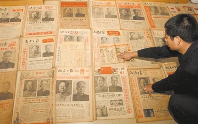 “國慶方面各類報紙就有2噸,多從要搬家的機關事業(yè)單位,或者廢品收購站購來的!睏钕栾w說,收藏國慶報道的報紙,他花了13萬元左右。