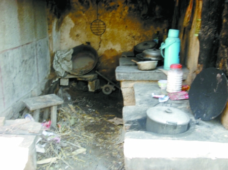 老人有關(guān)節(jié)炎,但一家的重?fù)?dān)都壓在他肩上。李廣的老伴去年冬天下山采購年貨時摔倒了,摔傷了頭和胳膊,除了基本的自理外,已經(jīng)不能做重活了。因家庭貧困,沒錢買更好的藥,現(xiàn)在老伴主要靠吃一些止痛藥來遏止病痛。殘疾智障的兒子更需治療。他們在山頂辟出的三兩畝地,已無法養(yǎng)活這個家。
