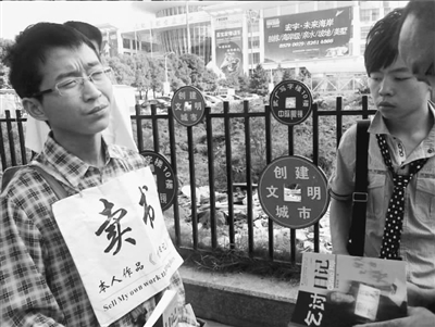 昨日,被網(wǎng)民稱為“史上最牛乞丐”的夏海波,前胸掛著賣(mài)書(shū)招牌,后背貼著“行乞告白”,站在武廣門(mén)前簽售他的15萬(wàn)字小說(shuō)《乞討日記》。市民紛紛掏錢(qián)購(gòu)買(mǎi),并請(qǐng)他在書(shū)上簽字“留念”。