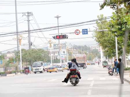 10月8日,一位從華山大街向東行的外地司機(jī)把車停在民生街丁字口的紅燈前,不知道如何是好。原來前方的紅燈亮著,但是旁邊的藍(lán)牌子上卻寫著“紅燈亮?xí)r 直行通過”,他看著身邊的車既有飛馳通過的,還有停車觀望的,更多的是半停半走猶豫不決的。所以不知道該怎么辦。而渭南的出租車司機(jī)老胡說,這個(gè)紅綠燈堪稱“最!,設(shè)立得根本就不科學(xué),設(shè)立這么一個(gè)牌子,難道旁邊還要再加個(gè)牌子說綠燈亮?xí)r繼續(xù)通行?當(dāng)?shù)厝舜蠖济靼祝@個(gè)紅綠燈設(shè)立的目的是限制向北拐的,只要把紅綠燈設(shè)置個(gè)向北的箭頭就可以了,而弄個(gè)紅燈加個(gè)說明有些自相矛盾。記者查閱《中華人民共和國(guó)道路交通安全法》,第二十六條規(guī)定:“交通信號(hào)燈由紅燈、綠燈、黃燈組成。紅燈表示禁止通行,綠燈表示準(zhǔn)許通行,黃燈表示警示。”