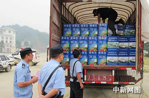 中新網宜昌10月9日電(郭曉瑩 楊維冬 韓雯)10月8日,一川籍貨車載312桶危險品,冒充香料乘載滾裝船欲經水路從四川運至江西,在三峽大壩上游處被長航公安局宜昌分局民警查獲。