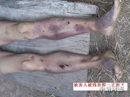 事發(fā)河北省巨鹿縣于莊村。據(jù)受害人家屬介紹,上月初,巨鹿縣國稅局干部信增興家中約四千元人民幣被盜,疑為本村村民信世國所為,隨即多次將其毆打逼問。九月八日晨,信增興夫婦糾集其弟信增強、侄子信敬偉等四人闖入受害人家中,將其強行拽至一處荒棄的老屋內(nèi),背捆雙手吊到外屋門框上,用事先準備好的皮鞭、木棒毆打拷問。然后又將受害人吊到屋內(nèi)房梁上用皮鞭、棍棒持續(xù)抽打兩個多小時。