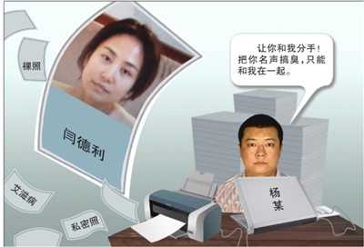 今年6月,閆德利提出分手。楊某不同意,對(duì)其百般糾纏,但遭到了閆德利的拒絕。8月初,楊某從中關(guān)村專(zhuān)門(mén)購(gòu)買(mǎi)了筆記本電腦、上網(wǎng)卡、打印機(jī)、塑封機(jī)等設(shè)備,接下來(lái)便是打印散發(fā)與閆德利同居時(shí)的私密照,開(kāi)博捏造事實(shí),公布“嫖客”電話號(hào)碼……成為掀起軒然大波的“艾滋女”事件的始作俑者。
