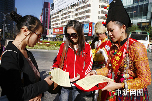 在今日舉行的宣傳活動(dòng)上,記者見(jiàn)到了這二十六位“消防形象大使”。他們身著傳統(tǒng)民族服裝,向市民發(fā)放消防安全知識(shí)手冊(cè),并現(xiàn)場(chǎng)為市民講解消防知識(shí)。據(jù)稱(chēng),他們回到自己家鄉(xiāng)后,還將繼續(xù)當(dāng)?shù)仄稹跋佬蜗蟠笫埂钡穆氊?zé),向云南少數(shù)民族地區(qū),特別是邊遠(yuǎn)的地區(qū)宣傳消防知識(shí)。