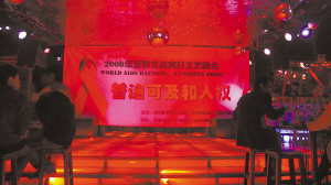 昨天晚上,天下著細(xì)雨,渝中區(qū)上清寺附近的酒吧里,同性戀者舉行世界艾滋病日文藝晚會(huì),我市百余名男男同性戀聚集在此。記者以彩虹工作組防艾志愿者身份,走近男男同性戀者,所見(jiàn)所聞,發(fā)人深省。