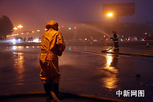 據(jù)悉,事發(fā)現(xiàn)場位于許昌市城市主干道,當時又適逢下班高峰期,過往車輛、行人特別多。為安全起見,消防官兵和交警在事發(fā)現(xiàn)場500米范圍內(nèi)拉起警戒線,嚴禁使用手機和有明火產(chǎn)生,同時交警部門對蓮城大道和魏文路進行了臨時雙向交通管制,禁止一切無關(guān)人員和車輛通行。根據(jù)現(xiàn)場情況,消防官兵迅速用兩個消防開花水槍和一個消防水炮造出三道大水幕,阻隔天然氣向周圍繼續(xù)擴散,并向泄漏的路面處進行噴淋。