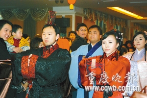 昨中午,在長壽區(qū)某賓館,一場傳統(tǒng)漢式婚禮舉行;槎Y中,司儀說起了文言文,部分來賓聽得云里霧里。