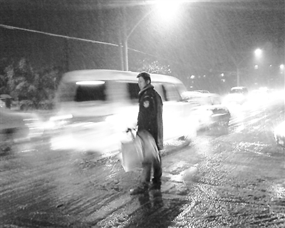 休假,路遇堵車,主動(dòng)在大雪中疏導(dǎo)交通近1小時(shí)。昨日,市民劉女士致電本報(bào),希望能尋找到這位敬業(yè)的警察。