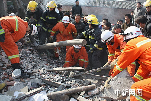 當日下午13時14分,瑞安市消防大隊接到報警后,迅速調(diào)集公安現(xiàn)役消防隊及專職消防隊6輛消防車30名指戰(zhàn)員趕到現(xiàn)場實施救援。消防官兵到達現(xiàn)場時,現(xiàn)場一片狼藉,百余平方米的房屋已成為廢墟,現(xiàn)場嘈雜聲混成一片,爆炸現(xiàn)場多處起火,火魔開始向倒塌民房蔓延,而廢墟下面有多條生命等待著救援,現(xiàn)場情況十分危急。消防官兵立即出兩支高壓水槍對火勢進行控制,同時救援小組迅速展開營救。