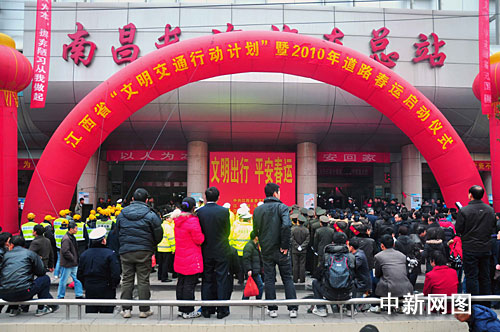 中新網(wǎng)南昌1月29日電(記者 段長征)1月29日,江西省“文明交通行動(dòng)”及暨道路春運(yùn)啟動(dòng)儀式在南昌長途汽車站舉行。這標(biāo)志著江西省“文明交通行動(dòng)計(jì)劃”與2010年道路春運(yùn)正式拉開帷幕。江西省副省長洪禮和及省文明辦、省公安廳、省交通廳、省交警總隊(duì)等部門領(lǐng)導(dǎo)出席了現(xiàn)場啟動(dòng)儀式。