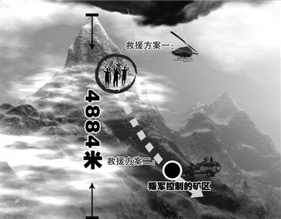 據(jù)了解,還有兩個方式走出原始秘境。一是乘坐直升機,但每天如約而至的大暴雨根本沒有適合直升機飛行的條件。二是穿過當(dāng)?shù)嘏衍娍刂频牡V區(qū)。但這需要有過硬背景的探險公司與政府武裝聯(lián)合,喬裝成礦工用軍車乘夜間護送。途中還需要很大一筆費用來打點當(dāng)?shù)氐奈溲b分子,這樣才能順利通行。這些條件缺一不可,否則,很有可能被當(dāng)?shù)胤钦溲b扣押。7名隊員一直認(rèn)為這一路徑十分冒險。但如果不能原路返回,穿越礦區(qū)就成為登山隊員走出原始秘境的一條捷徑。