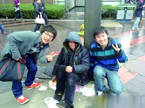 昨天(3日),網(wǎng)友們?cè)跂|門口再也沒有見到“犀利哥”的身影,這讓許多關(guān)注“哥”的網(wǎng)友因?yàn)闊o意間給他造成傷害感到內(nèi)疚。而昨天東方論壇上的一張照片更讓網(wǎng)友憤怒:兩個(gè)男孩一左一右在“犀利哥”旁邊擺出“v”字笑著拍的照片。網(wǎng)友們說,看了這張照片,感到寒心。