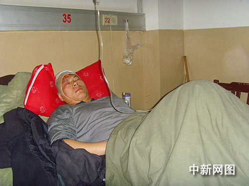 3月22日下午1時(shí)40分許,記者在阜陽市人民醫(yī)院急救中心二樓病房里,見到了肇事司機(jī)董飛,他躺在病床上,旁邊坐著一女子與其聊天。當(dāng)發(fā)現(xiàn)有記者前來采訪拍照,該女子迅速離開,面對(duì)記者董飛一直不開口說話。隨后,病房?jī)?nèi)看守董飛的兩名警察阻止了記者采訪。