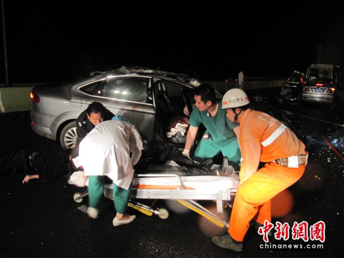 當(dāng)天晚上21時20分,北海市消防官兵接警到達位于北鐵收費站往鐵山港方向500米處的事故現(xiàn)場后,見一輛車牌號為滬J86981的福特轎車橫擺在公路中間,車頭破碎不堪,車體頂部面目全非。在距離該車10米左右,一輛車牌號為桂E36186的力帆轎車亦直擺在公路邊上,車頭和車體也存在不同程度的破損。同時公路上還灑滿了零零星星的玻璃碎片和車體殘片,地上躺著被甩出車外二男一女已當(dāng)場死亡。而兩車的駕駛員分別被困在駕駛室,動彈不得。