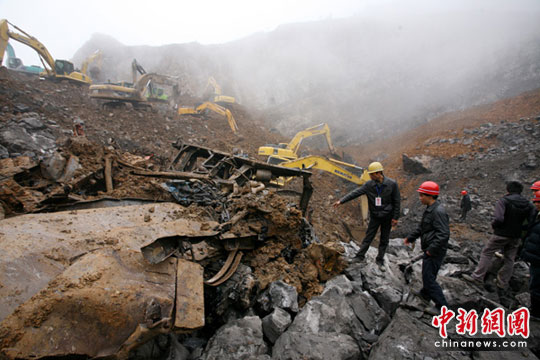 據(jù)介紹,搜救犬幫助確定位置后,繼10日17:30分發(fā)現(xiàn)一臺后,今天又在垮滑現(xiàn)場陸續(xù)發(fā)現(xiàn)3臺汽車,至此垮滑現(xiàn)場已找到5臺汽車殘骸。記者在現(xiàn)場看到,汽車大梁、駕駛室、發(fā)動機全部支離破碎成了一堆廢鐵。10臺挖掘機正在不停的工作。現(xiàn)場兩位公安人員拿著照相機、攝像機正在汽車殘骸前取證。三位救援工作人員一邊指揮,一邊提醒挖掘機司機小心謹慎。樂山消防支隊的官兵也在查看現(xiàn)場情況,看能否發(fā)現(xiàn)被埋人員。武警樂山支隊的30余名官兵也做好一切準(zhǔn)備,一但發(fā)現(xiàn)情況將迅速趕赴清理現(xiàn)場增援。