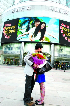 婷婷的男友田新營告訴記者,他比婷婷年長兩歲,來自山東,和婷婷是通過朋友介紹認(rèn)識的。當(dāng)時(shí)他剛剛辭了工作,正處于事業(yè)的低谷,可是婷婷并沒嫌棄,反而給了他無限的勇氣,后來他找到了新工作。田新營說,半年前他就一直在想以什么方式向婷婷求婚,有一天他從這塊大屏幕下路過,突然來了靈感。1個(gè)月前,他向商場請求,想通過大屏幕向女友求婚。商場覺得這是件好事兒,很爽快地答應(yīng)了。于是就有了這段浪漫、溫馨的求婚現(xiàn)場。(于海波)