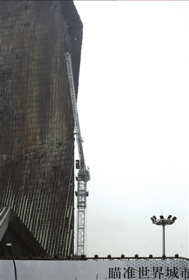 昨天,記者在央視大樓新址看到,過火的北配樓工地上已搭起塔吊。北京城建集團相關項目負責人透露,他們正在為過火樓復工做前期準備。