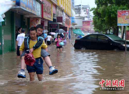 中新網(wǎng)長沙5月6日電(肖前輝 袁平)連日的暴雨襲擊導(dǎo)致湖南局地出現(xiàn)嚴(yán)重災(zāi)情。婁底市新化縣水車鎮(zhèn)一名8歲小孩在暴雨摧塌的房屋中不幸遇難;由于強(qiáng)降雨后街道排水不暢,新化城區(qū)成“澤國”,街道被淹成了“河道”。