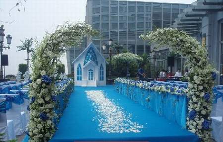 16午12時(shí),在某大酒店,一個(gè)微縮版的水晶教堂,擺上了婚禮舞臺(tái)。婚禮承辦方負(fù)責(zé)人馬先生說(shuō),婚禮的布景,花了20多萬(wàn)元。