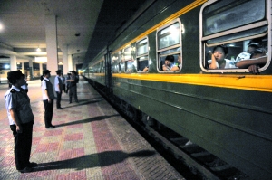 昨晚還有數(shù)百“火車迷”聚集在豐臺站,拍照、攝像、收藏站臺票、揮手告別。直至凌晨,豐臺火車站依然喧囂。23時20分,準備乘坐4452次車的“火車迷”們,已在候車。他們當中,最大的70多歲,最小的只有6歲。