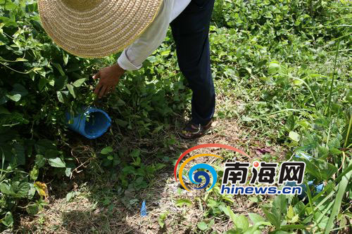 接到反映,南海網(wǎng)記者趕到位于牛嶺隧道旁的南海天闕.銀牛嶺度假別墅酒店項目工地,在工人們的帶領下,記者找到工地的蓄水池。在蓄水池下方的草叢中,被砍斷的水管赫然出現(xiàn)在記者眼前。