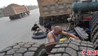 【解說】記者來到姜水河邊,滿目裸露的河床。在干涸的河床上,村民們挖出一個個2米多深的大坑,等著絲絲地下水滲出,等滲到一定深度,再用水泵抽出澆灌。