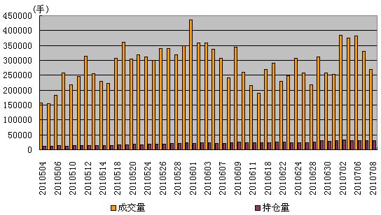 中新網(wǎng)7月8日電(王文舉) 今日四個(gè)期指合約全部高開低走,除遠(yuǎn)月合約IF1012微跌收盤外,其他合約均紅盤報(bào)收,全天振幅不大,總持倉(cāng)量較前一交易日微增94手,持續(xù)高位運(yùn)行,不過總成交量延續(xù)了昨日的回落態(tài)勢(shì)。
