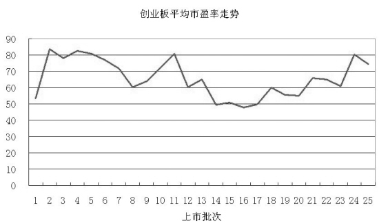 自創(chuàng)業(yè)板開板以來,對發(fā)行市盈率偏高的爭議仿佛沒有停止過。從統(tǒng)計數(shù)據(jù)來看,整個板塊的發(fā)行市盈率也的確比A股其他板塊高出一截。統(tǒng)計顯示,25批127只創(chuàng)業(yè)板股的平均發(fā)行市盈率高企65.01倍,遠超中小板新股的51倍及主板新股的38倍。其中發(fā)行市盈率超過60倍的共計71股,占總量的56%。