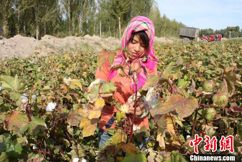 位于甘肅省河西走廊西端的疏勒河流域,是甘肅百萬(wàn)畝大型自流灌區(qū)之一,時(shí)下,這里種植的棉花喜獲豐收。來(lái)自甘肅積石山縣的移民、棉農(nóng)馬化忠今年種了16畝棉花,估計(jì)能產(chǎn)棉花4000公斤。他興奮地說(shuō),按當(dāng)?shù)孛藁ㄊ召?gòu)價(jià)格10.3元/公斤計(jì)算,他棉花收入能達(dá)到4萬(wàn)多元。侯志雄 攝
