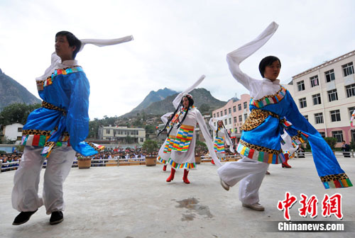 9月30日,甘肅舟曲縣第三初級(jí)中學(xué)舉行迎國(guó)慶61周年文藝匯演,祝福祖國(guó)更加強(qiáng)盛。今年8月8日,舟曲遭遇特大山洪泥石流地質(zhì)災(zāi)害,經(jīng)過1月多的搶險(xiǎn)救災(zāi)工作,舟曲救災(zāi)工作已步入轉(zhuǎn)型,如今的縣城,多數(shù)商戶恢復(fù)營(yíng)業(yè),學(xué)校恢復(fù)教學(xué)秩序。