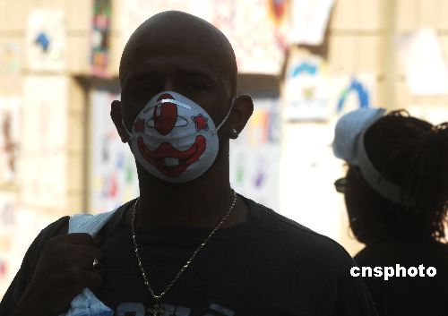 美國(guó)南加州大火十月二十八日主要在圣地亞哥山區(qū)已控制住,但官方估計(jì)至今還有一萬(wàn)二千戶家庭受到火災(zāi)威脅。圖為圣地亞哥民眾因空氣煙塵污染都戴上口罩上街。中新社發(fā) 賈國(guó)榮 攝